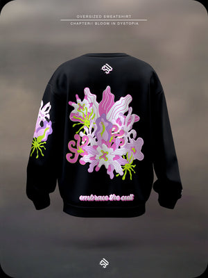 More than just another street wear staple, the BLOOMING DYSTOPIAN SWEATEE redefines individuality. Crafted with a regular fit for effortless style, it features vibrant floral artwork that symbolizes resilience amidst chaos, paired with the bold puff- printed "DYSTOPIA" to make a statement. This is not a sweat shirt you blend in with; it’s a wearable expression of uniqueness designed to make you stand out in any crowd.